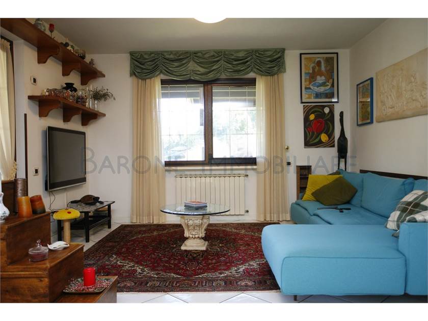 Il piano principale, oltre a due grandi TERRAZZE, ha un bel salone, uno studio, l'ampia cucina e un bagno. Al di sotto si sviluppa il piano di TAVERNA, grandissimo, con cucina a vista, CAMINO e ingresso secondario, oltre a lavanderia. Al primo piano invece si trova la zona notte: il bagno principale con vasca, un bel terrazzo e le tre camere da letto (di cui una con bagno privato).