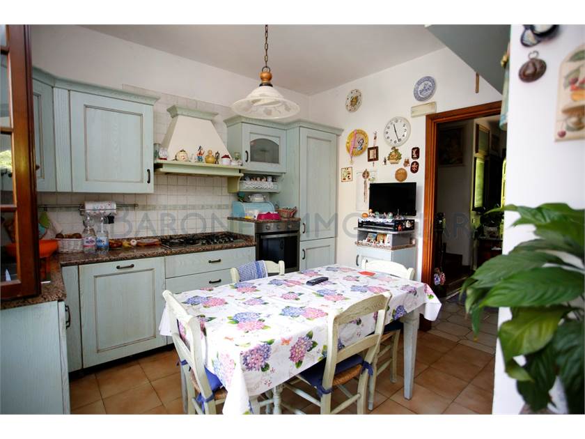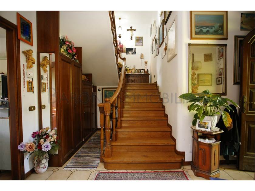 Al piano nobile, abbiamo un grandissimo salone che si affaccia sulla veranda/portico che domina tutto il giardino, completano il piano una comoda cucina che affaccia su un piccolo terrazzo in cui si accede al giardino; dal piano nobile si salgono le scale e si arriva ad un piano ammezzato che ha una camera matrimoniale ed un grande bagno, due ampie camere singole, con tre comodi e ampi balconi, sopra due camere mansardate comode e ampie.