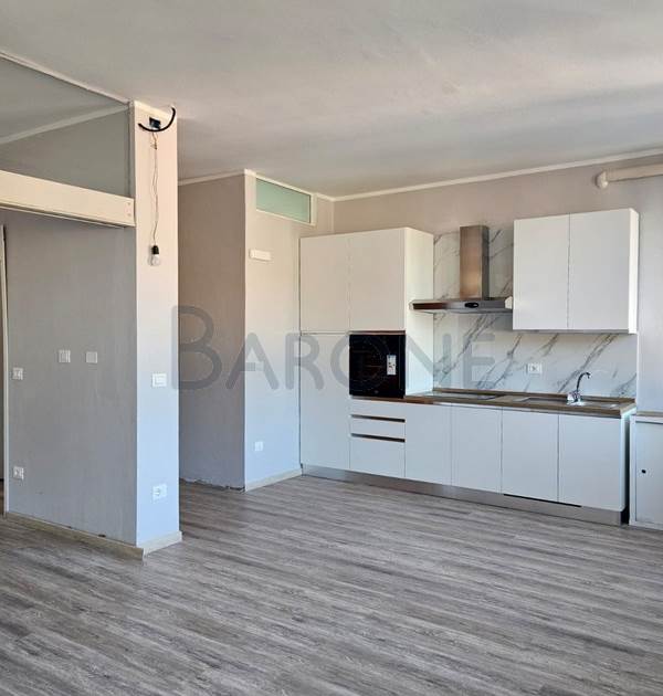 Disimpegno di ingresso, bagno con doccia e ampio ambiente OPEN intelligentemente predisposto per essere diviso in zona giorno e zona notte anche con una parete leggera, una porta a vetro o una armadiatura adatta allo scopo.