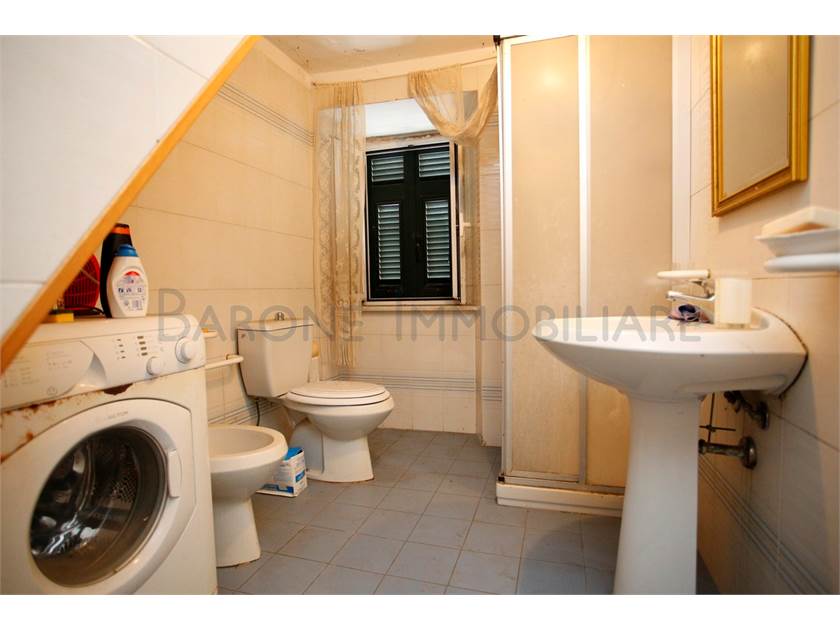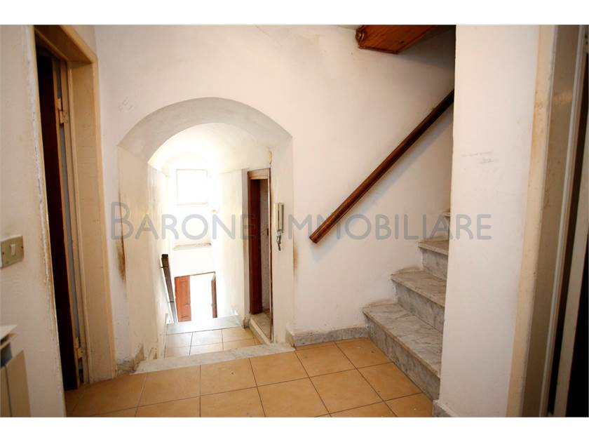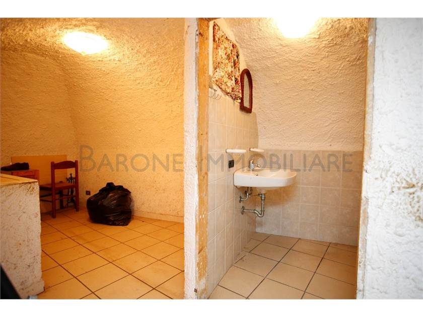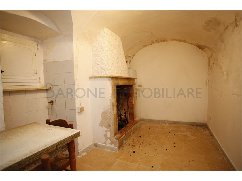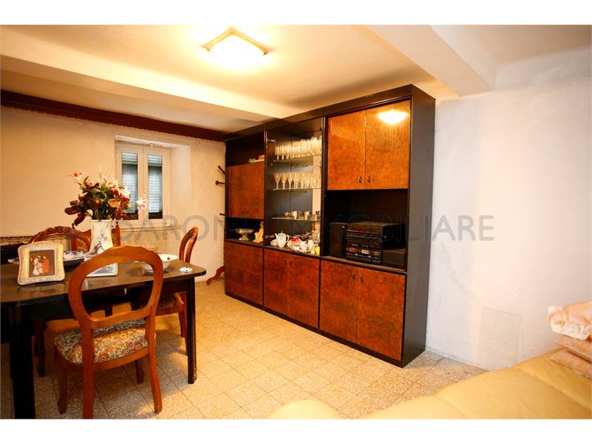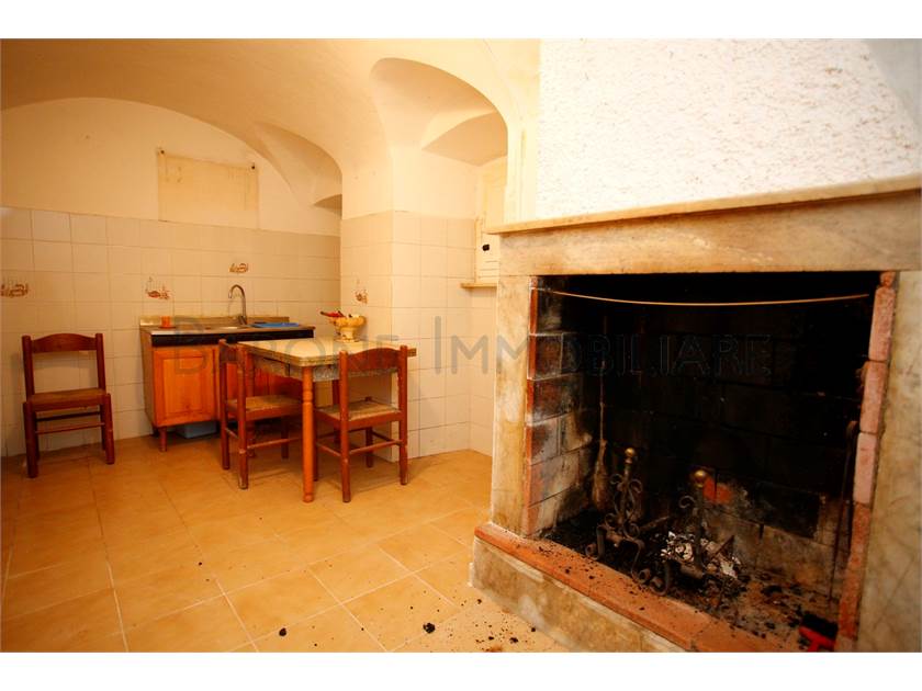 Scala di ingresso che porta al piano giorno, con sala, cucina con camino, tinello e comodo bagno con finestra e doccia. Ampio vano ad uso cantina/ripostiglio con piccolo servizio secondario.