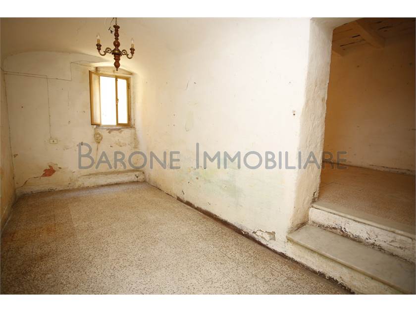 Ingresso sulla vecchia cucina, con tanto di camino e grande ripostiglio, dove sarebbe ora ideale realizzare un nuovo e comodo bagno. Salotto di passaggio con volta a botte e camera da letto rialzata di un paio di gradini rispetto al resto della casa.