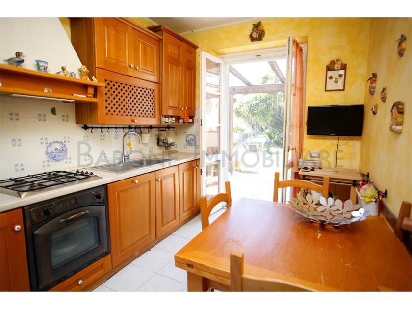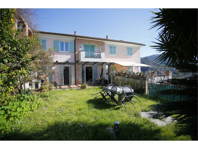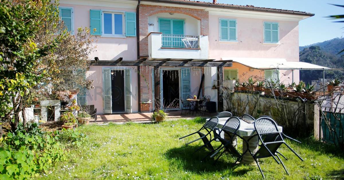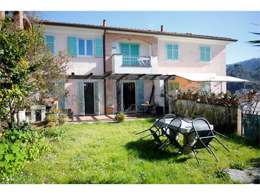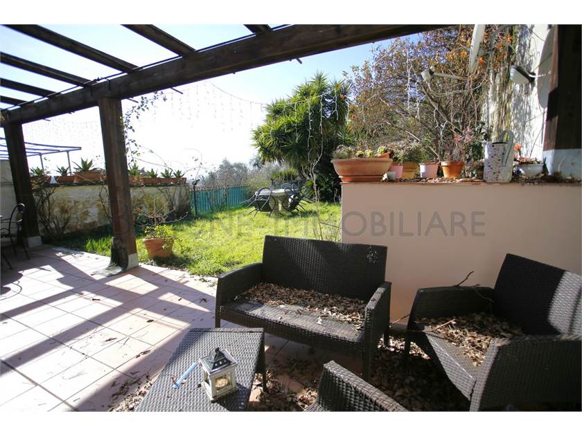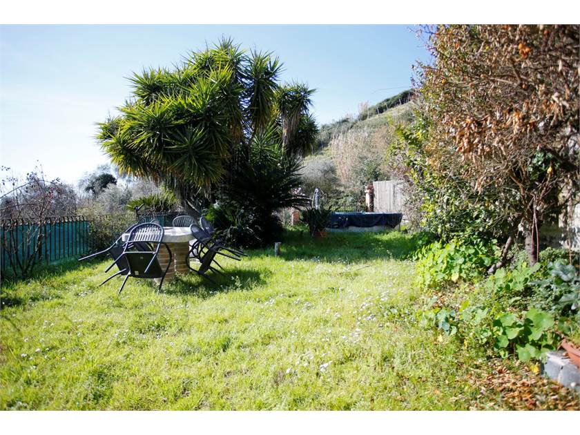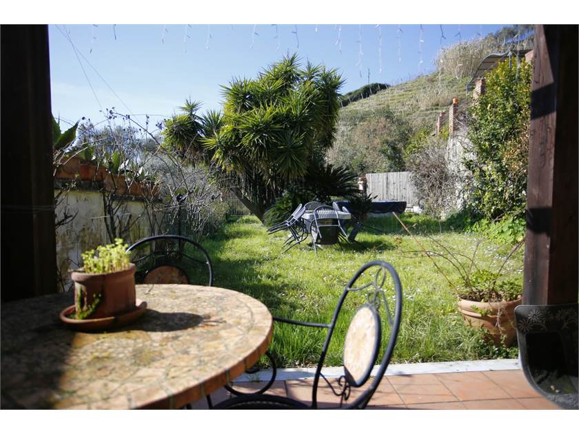 Sala e cucina affacciano sul retro della casa, dove abbiamo una graziosa VERANDA, che prelude allo stupendo GIARDINO, verdeggiante e con bellissime palme ornamentali, ma anche con una SPLENDIDA VISTA sulla vallata.