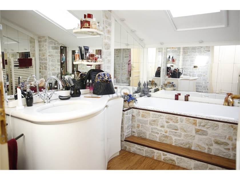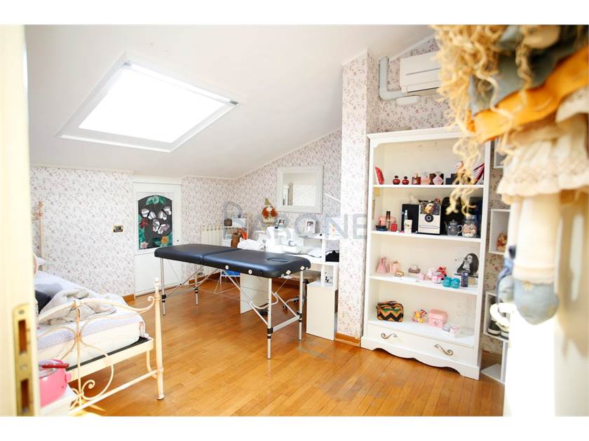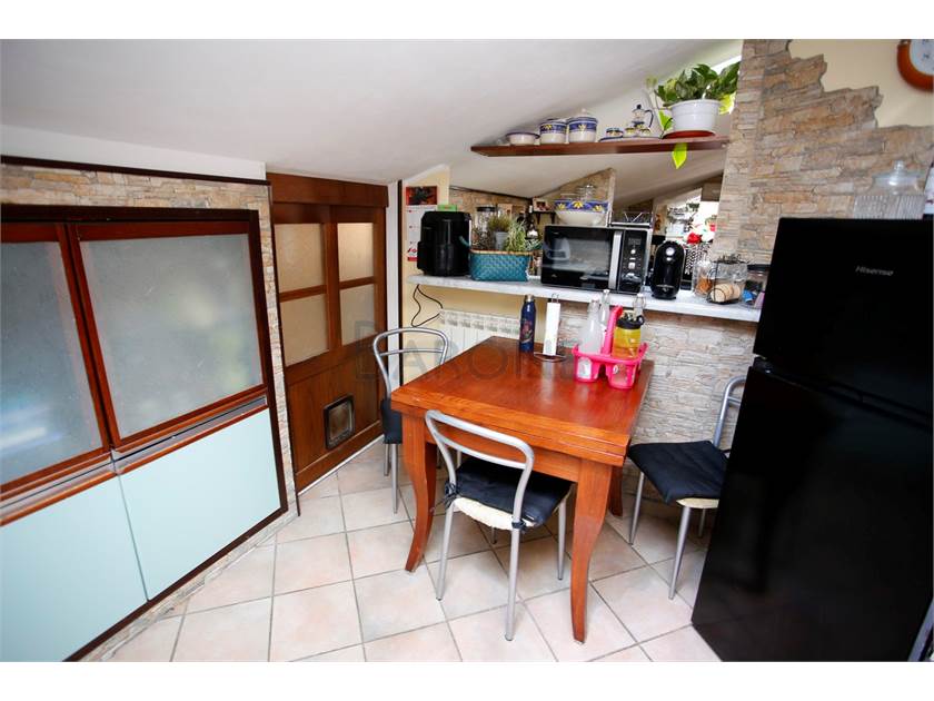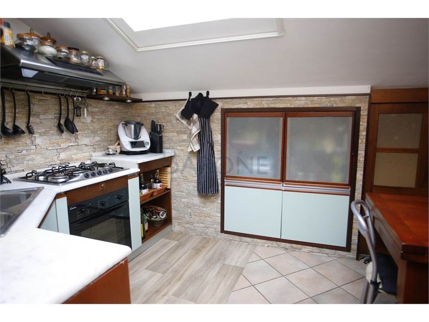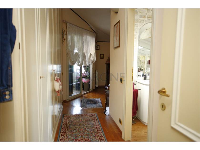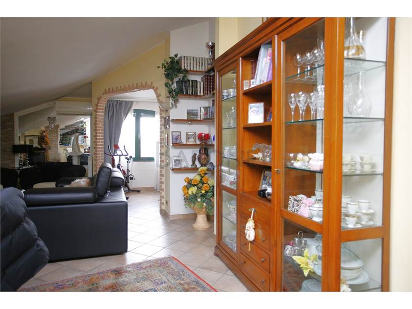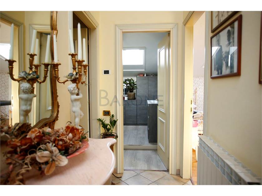 Cucina, sala, due camere matrimoniali e doppi servizi, oltre a veranda coperta. Gli spazi più bassi del mansardato sono sapientemente stati utilizzati per ricavare ampi spazi di ripostiglio, tanto discreti quanto utilissimi.