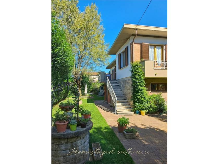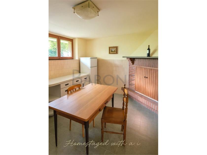 V 2749: Grande VILLA monofamiliare capace di essere utilizzata funzionalmente in due unità abitative, grazie al grande piano rustico a piano terra (fuori terra), al momento composto da una grande stanza-ripostiglio, un salone con CAMINO, cucina con altro camino e bagno.