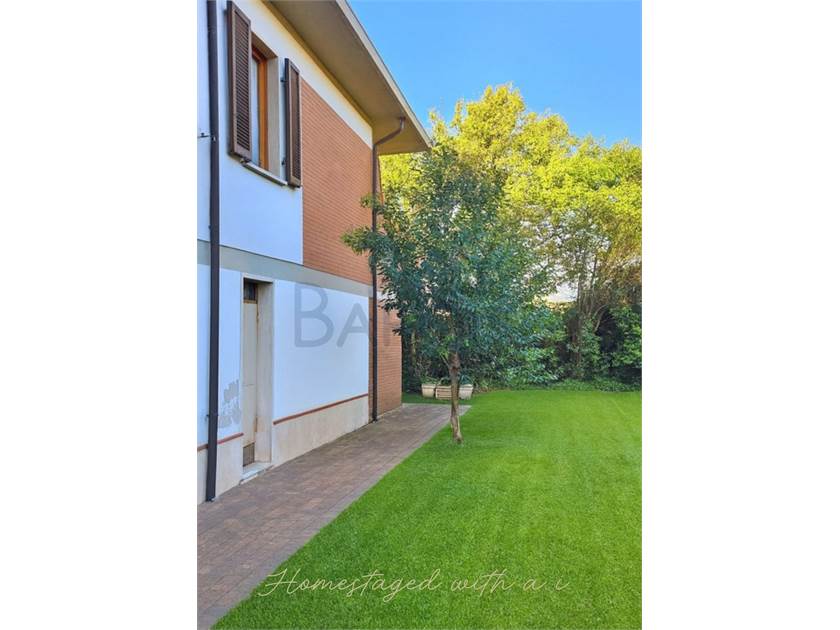 Piano nobile con tre camere da letto, sala, cucina, bagno e tre terrazzi; GARAGE a corredo e bel GIARDINO tutt'intorno alla casa. Una cosa RARA trovare così tanto SPAZIO ESTERNO unito a una ottima PRIVACY a una così piccola distanza dal MARE. Barbecue in muratura nel giardino.