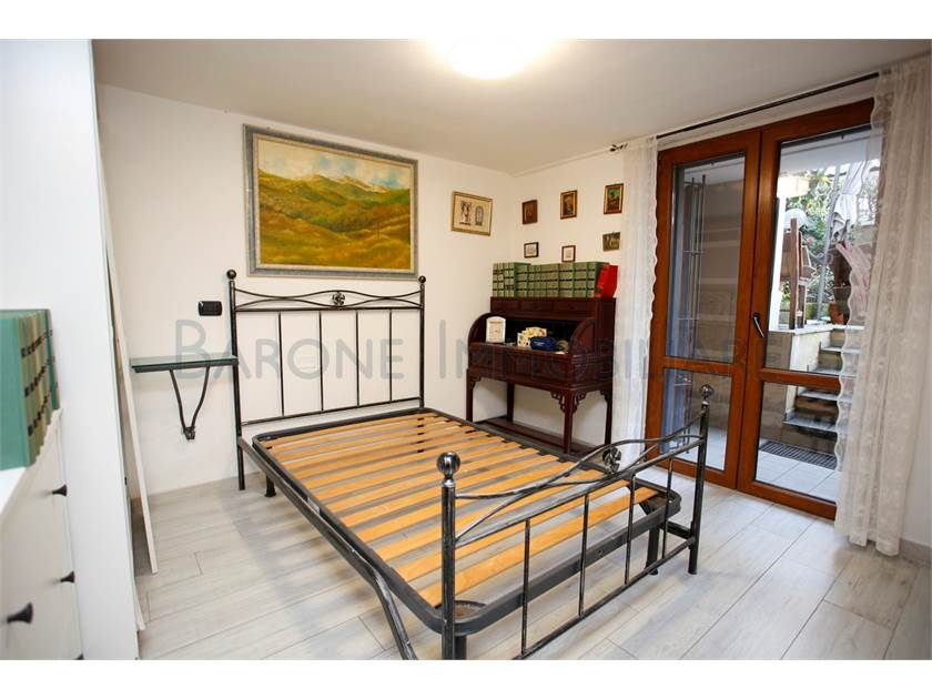 Due cortili di pertinenza, uno sul fronte e uno sul retro; ingresso al piano ammezzato dove si trovano sala, cucina e due terrazzi. Al primo piano, bagno principale, cameretta con terrazzo e grandissima camera matrimoniale, anch'essa con terrazzo dedicato.