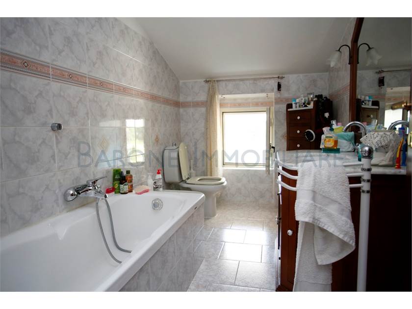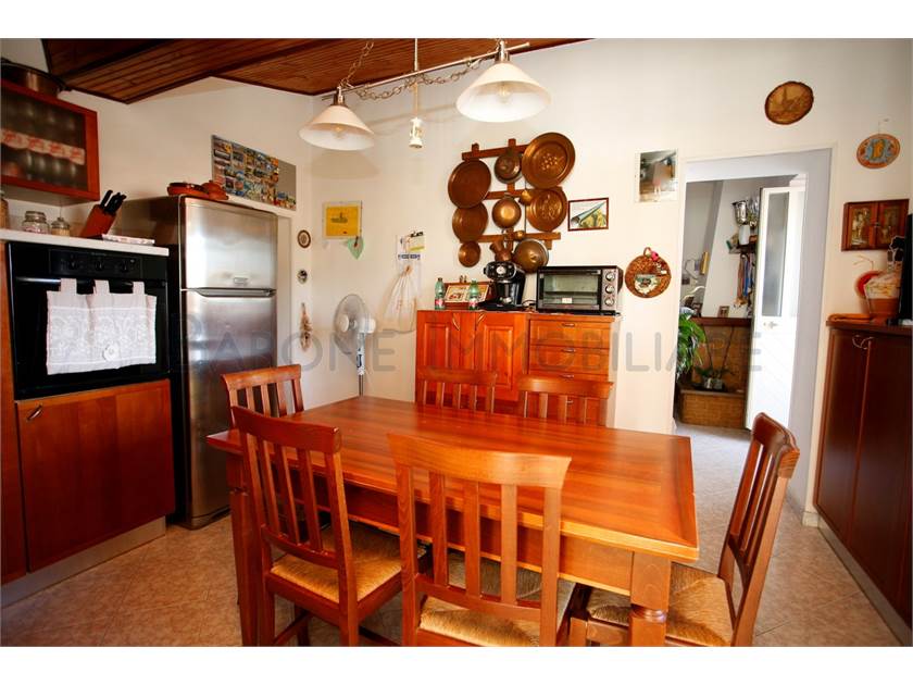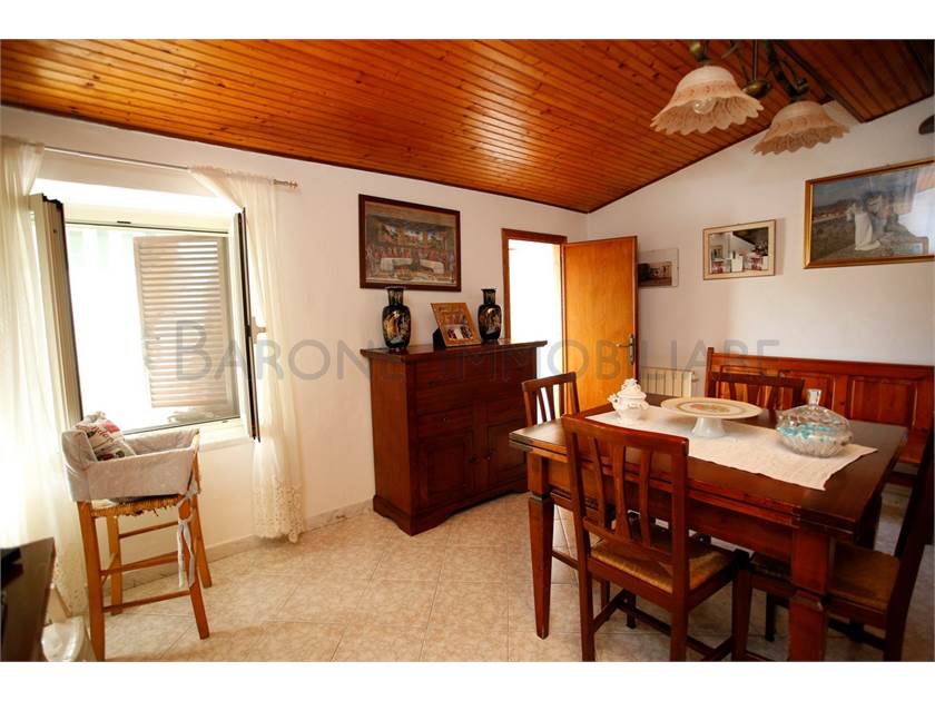 Un accogliente terrazzo, utilizzabile anche per pranzare all'aperto, circonda la casa sui due lati, offrendo una vista semplicemente meravigliosa sul mare e sui colli del Candia, mentre all'interno la casa offre, già abitabile, un disimpegno di ingresso con caminetto, tre camere da letto, due bagni, sala e cucina abitabili.