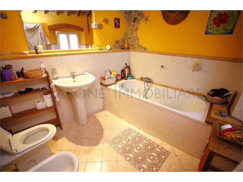 All'interno del borgo collinare di Altagnana, alla casa si arriva a piedi o con uno scooter, avendo anche la comodità di due cantine dove poterlo lasciare al coperto. Al primo piano della casa si trovano un terrazzino di ingresso, la cucina, un tinello con camino a legna e un salottino. Al piano superiore si trovano invece due comodi bagni con finestra, uno con vasca e l'altro con doccia, un terrazzino prendi-sole, una cameretta e una stanza armadi che, con una ultima scala, conduce alla camera matrimoniale.