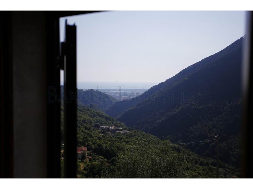 V 2708: Graziosa casetta di collina nel borgo di Altagnana, disposta su tre livelli collegati con scale rustiche in legno, luminosa e con una meravigliosa vista che si affaccia sulla valle del Frigido, fino al mare.
