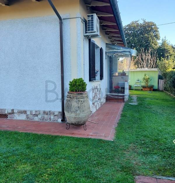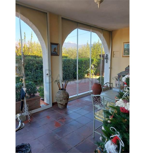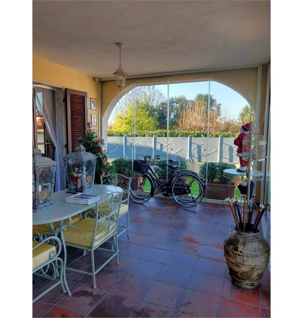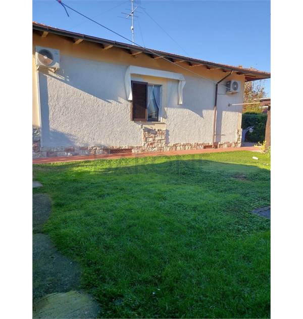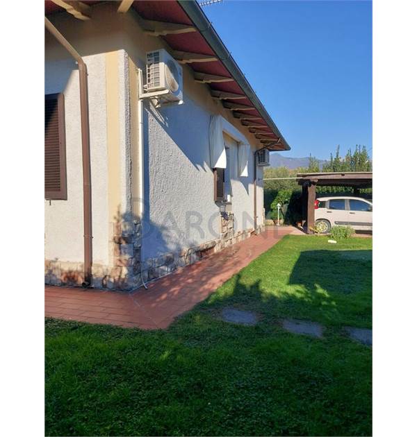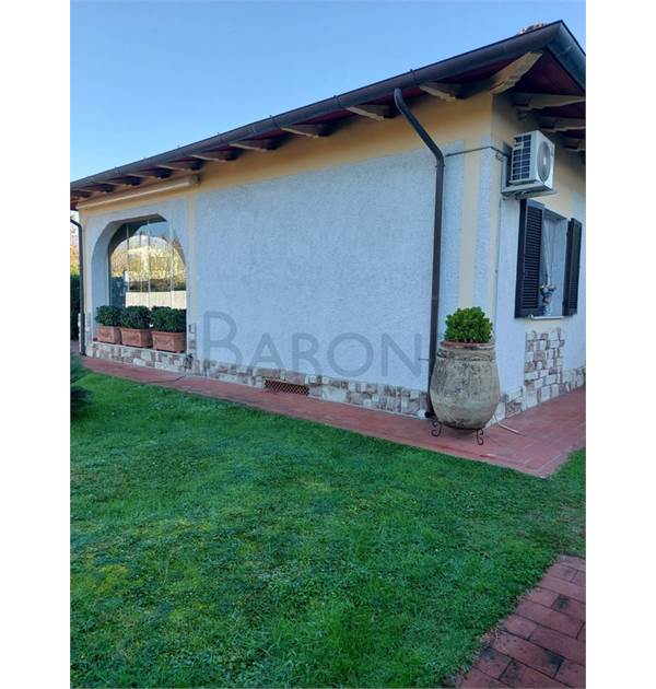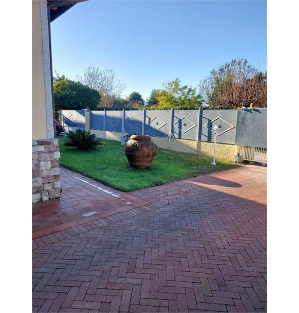 GIARDINO PRIVATO tutt'intorno con selciato per automobili e doppio ingresso carrabile e, all'interno, sala, cucina abitabile, due comode camere matrimoniali, corridoio e bagno, ma anche una ampia veranda di circa 24mq.