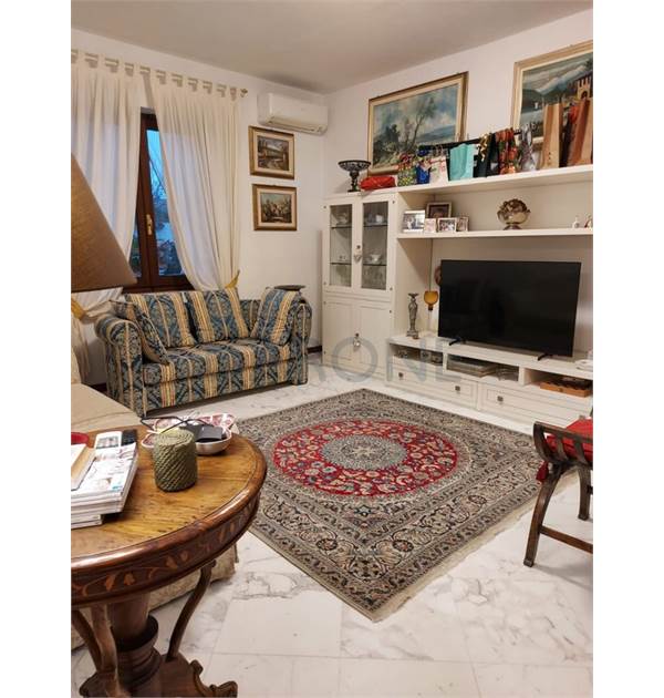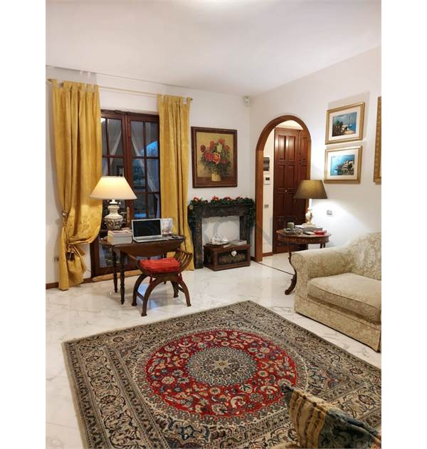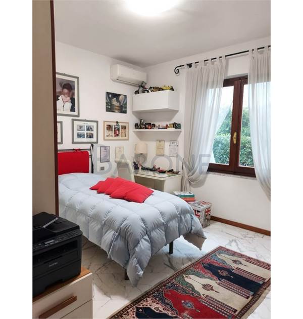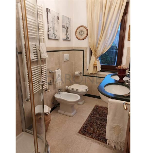 Riscaldamento a pavimento (in marmo calacatta), bagno in marmo botticino con box doccia in cristallo, doppio lavabo in marmo Guatemala. Impianto allarme esterno ed interno, aria condizionata, video citofono, due posti auto coperti e vari scoperti, oltre a box amovibile per moto e biciclette.