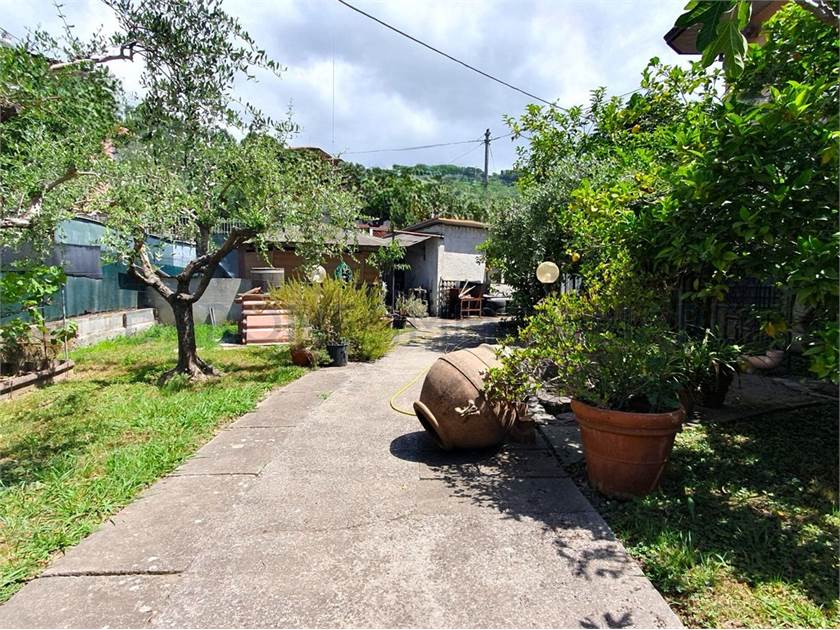 Al piano terra il grande giardino privato, oltre a dare la possibilità di parcheggio per più auto, ospita anche una cantina, un piccolo locale estivo e un bel box.