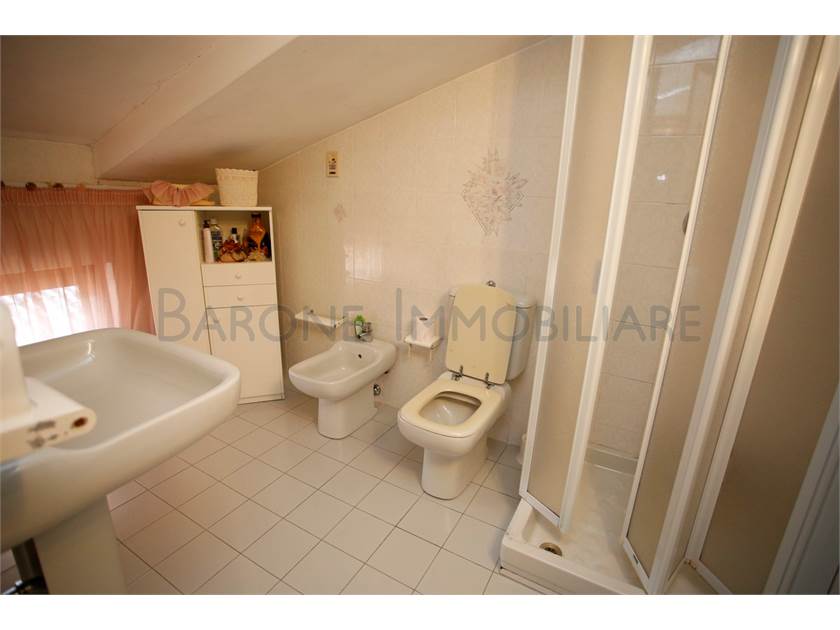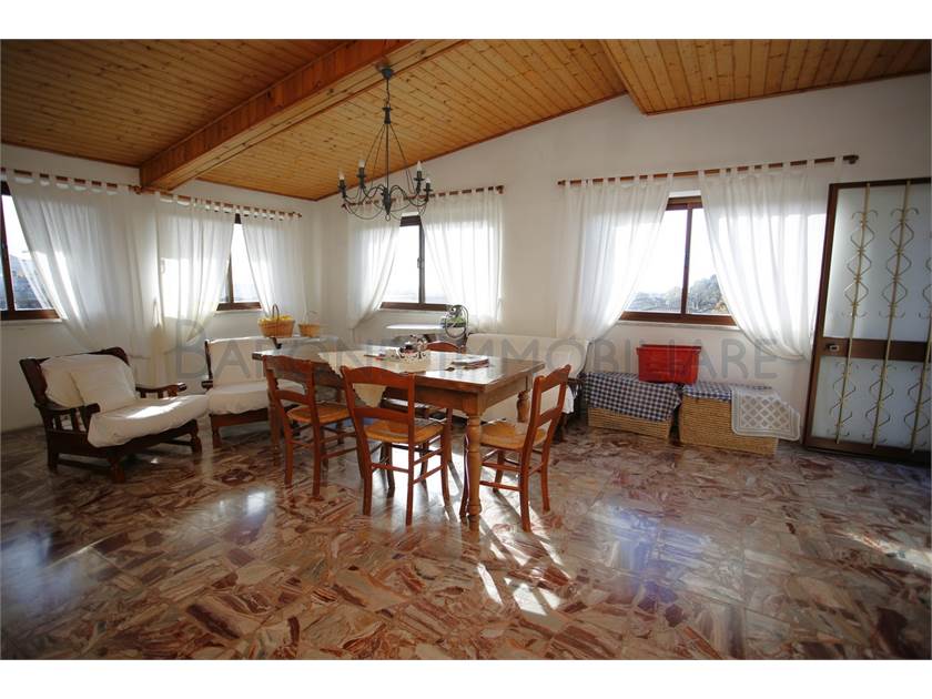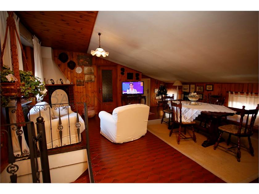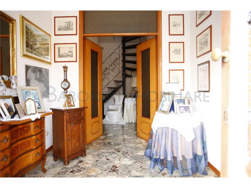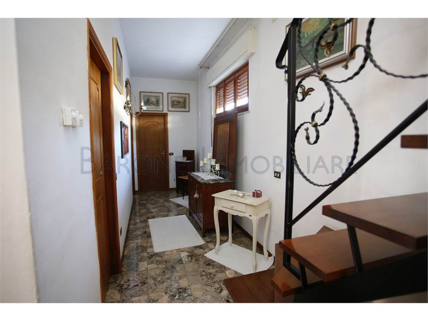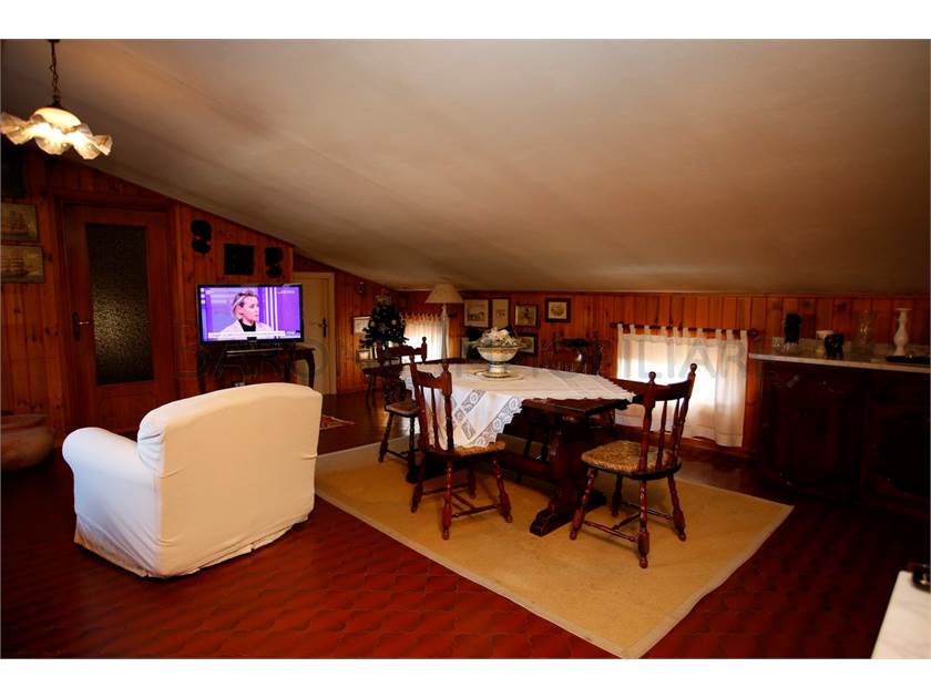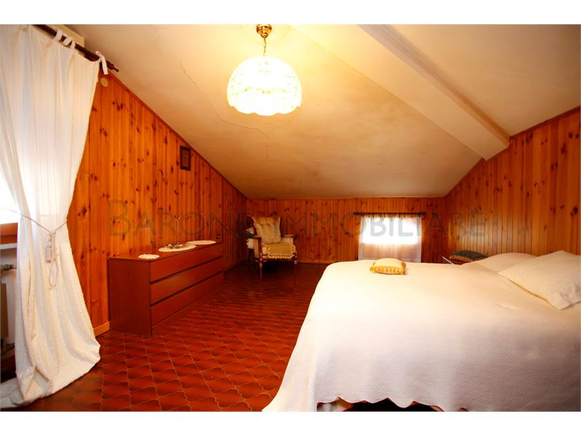 Al primo piano, ingresso su disimpegno, ampia cucina, salone, due comode camere da letto, bagno con finestra e terrazzo che gira sui due lati della casa. Il piano superiore, di abitazione mansardata, è collegata sia internamente all'appartamento sopra descritto che esternamente, dal terrazzo del primo piano.