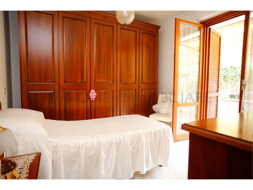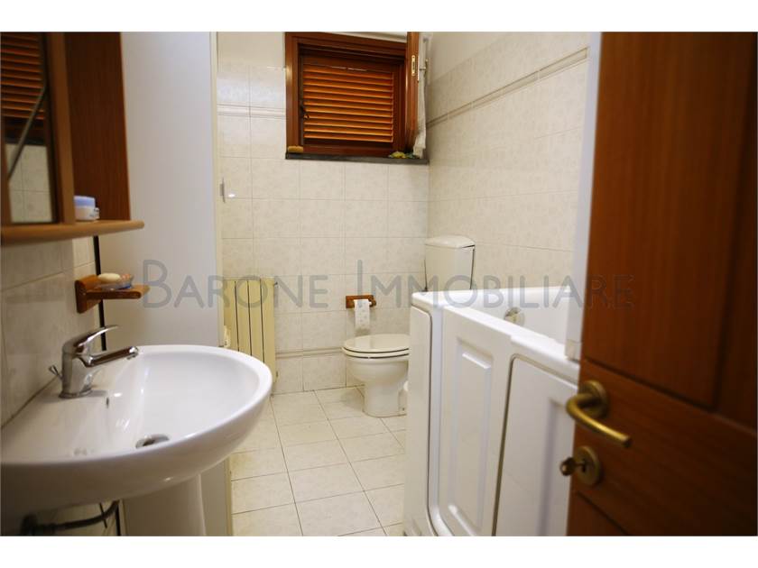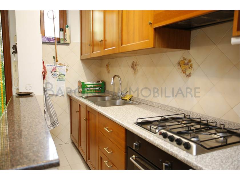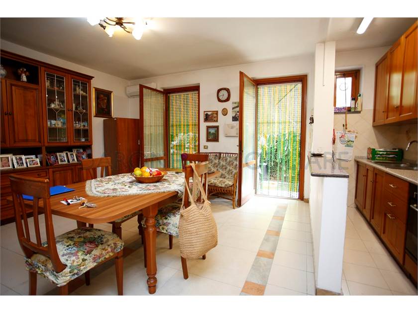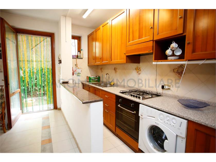 Ingresso nel soggiorno, con cucina a vista, terrazzino di servizio e accesso alla bella TAVERNA, composta da due ambienti, da un bagno e da un ampio locale ad uso ripostiglio con ingresso secondario. Dal soggiorno si accede anche alla zona notte, composta da due camere matrimoniali, cameretta, bagno e bagno di servizio; due delle TRE CAMERE hanno accesso ad un comodo TERRAZZO che affaccia sul GIARDINO retrostante.