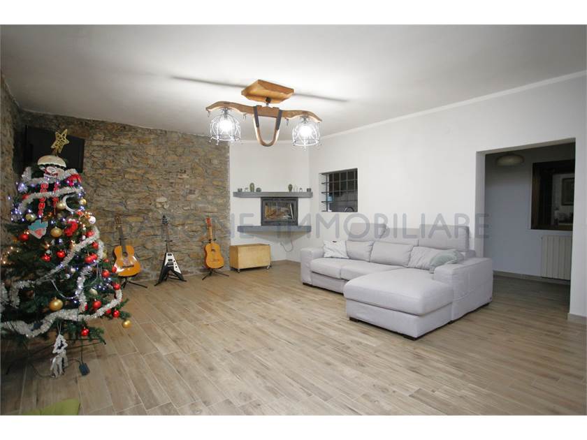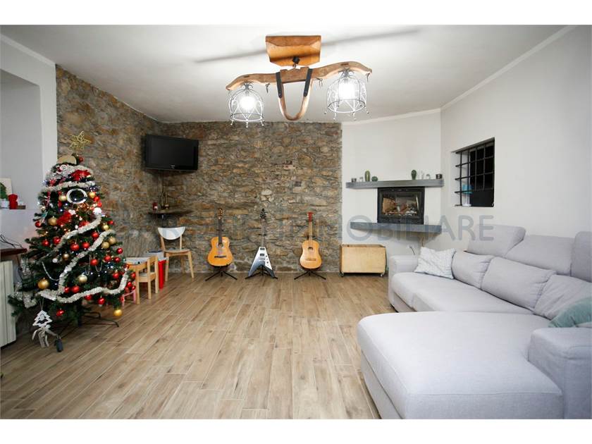 Al piano terra, ampio soggiorno con stufa a legna canalizzata e muro d'epoca in sasso (parte ristrutturata di recente), dispensa e cucina. Al piano primo abbiamo un'altra entrata con corridoio disimpegno, 3 camere da letto, terrazza e bagno.