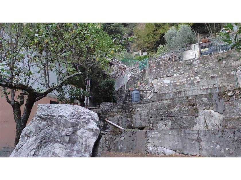 Completa il tutto ampio giardino su piane intorno alla casa, piantumato prevalentemente ad uliveto, con qualche albero da frutto. Nel giardino è presente un ricovero attrezzi, un pollaio, 2 ricoveri pieni di legna.