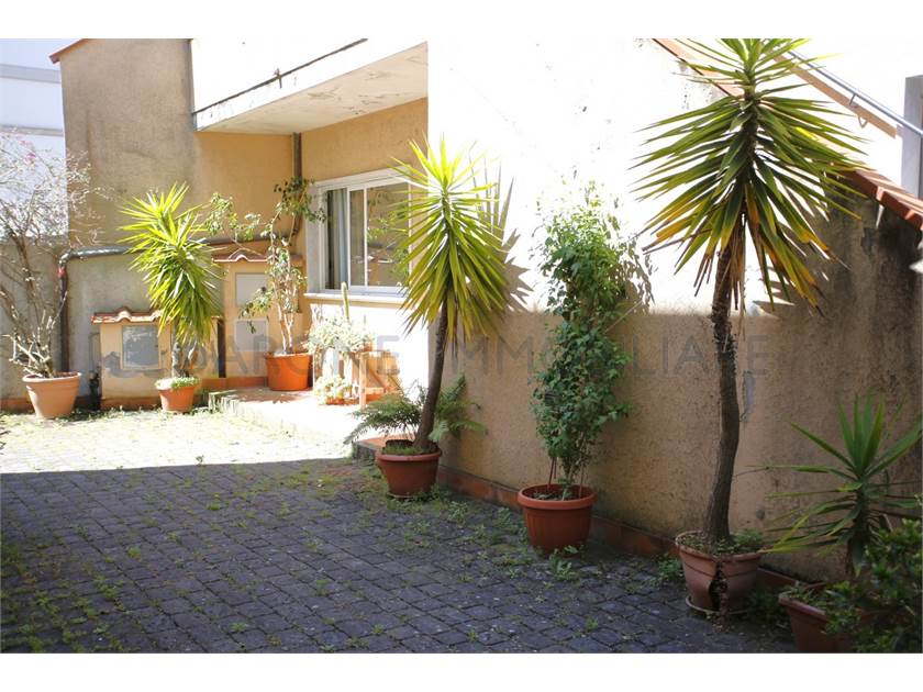 Il piano terra si compone di tre ampi vani con bagno ed è presente un cortile sul fronte, su cui insiste il passo del vicino e da un cortile sul retro, completamente privato.