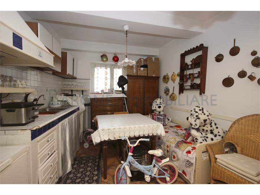 La casa si sviluppa su tre livelli, con veranda di ingresso al piano terra che ci porta ad una prima stanza, attualmente utilizzata come cucina/taverna. Corredata di camino, è ottima da vivere come zona giorno della casa; dal piano terra, con le scale nella verandina esterna (ma che si possono facilmente anche isolare mediante vetrage, che ne permetterebbero l'uso anche nelle giornate fredde e piovose) si passa al primo piano dove abbiamo un piccolo cucinotto e il soggiorno (che potrebbe diventare una comoda camera da letto in più).