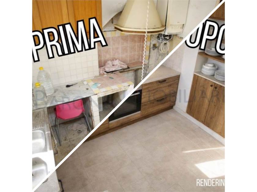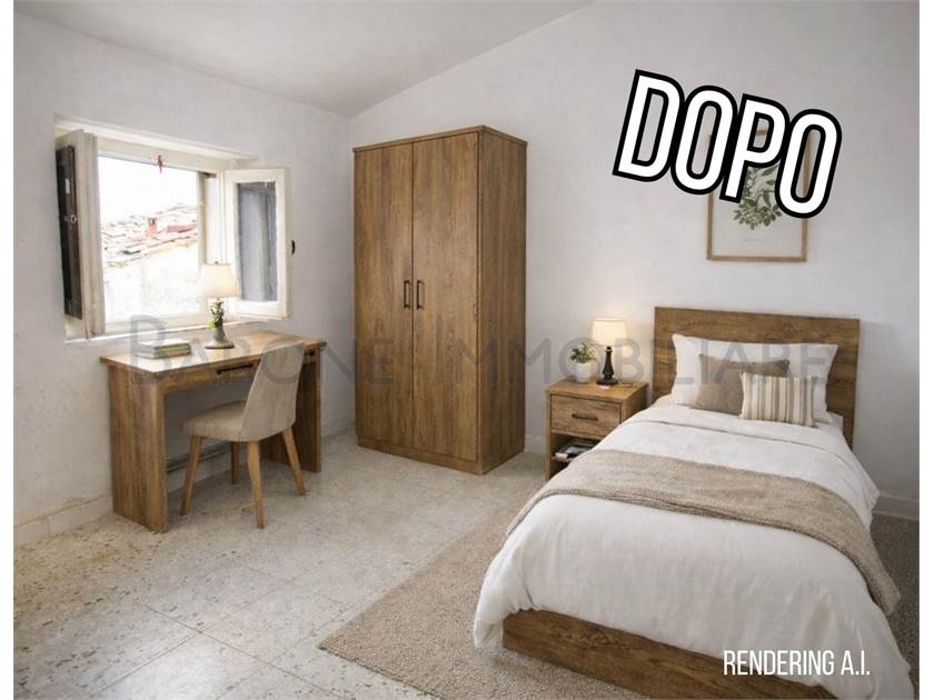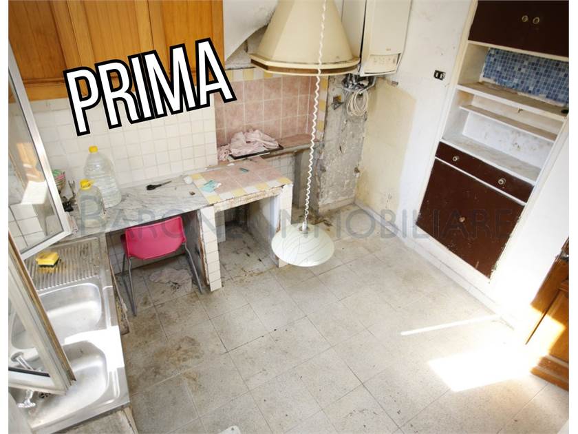 Internamente TUTTA DA RISTRUTTURARE, al primo e secondo piano di piccola palazzina senza spese condominiali; ingresso sulla piccola cucina e scala che porta al secondo piano, dove si trovano altre due stanze mansardate, la più grande con bagno finestrato.