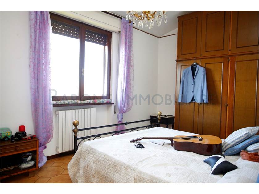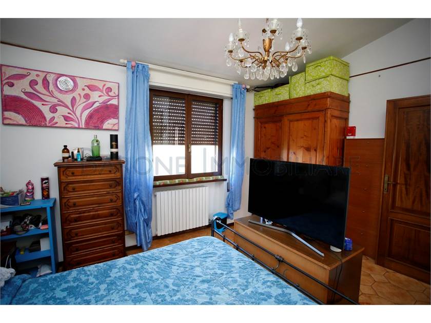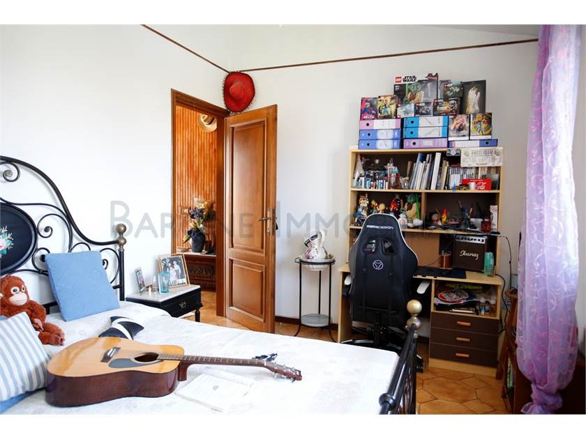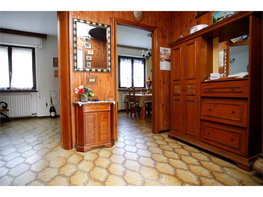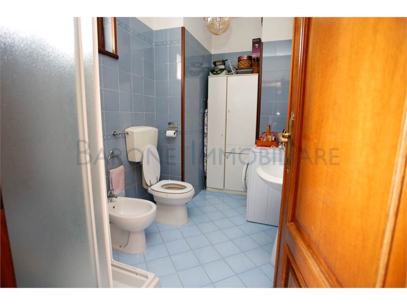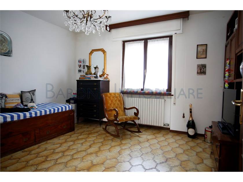 Ingresso su ampio disimpegno, comoda cucina con tinello, sala e bagno; scala a chiocciola che sale e porta a due camere singole, una matrimoniale e a un altro bagno.