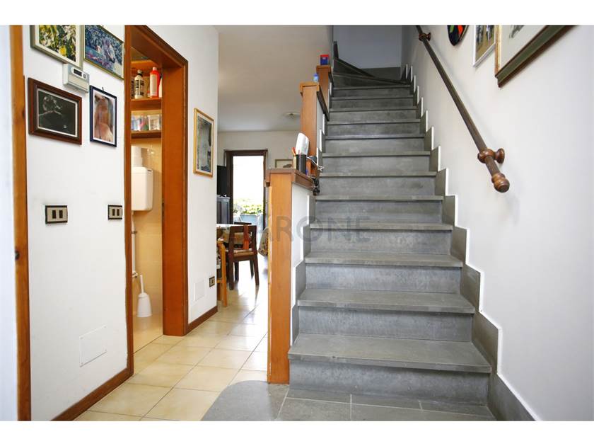 Al piano rialzato ci sono cucinotto, bagno di servizio e sala, con due terrazzi e uscita sul GIARDINO privato, dove insiste anche una utile tettoia per le biciclette. Al piano sottostante c'è una fresca e AMPIA TAVERNA con CAMINETTO per tutti gli usi e le esigenze mentre al primo piano si trova la zona notte, composta da bagno principale e due camere da letto con i rispettivi terrazzi.
