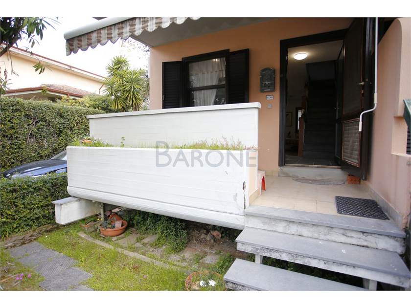 V 2825: Villetta a schiera a dir poco PERFETTA PER IL MARE; a Marina di Massa, defilata dal traffico, ma a soli 250mt dalle SPIAGGE, libera su tre lati e corredata da GIARDINO PRIVATO, posto auto e AMPIO BOX INTERRATO.